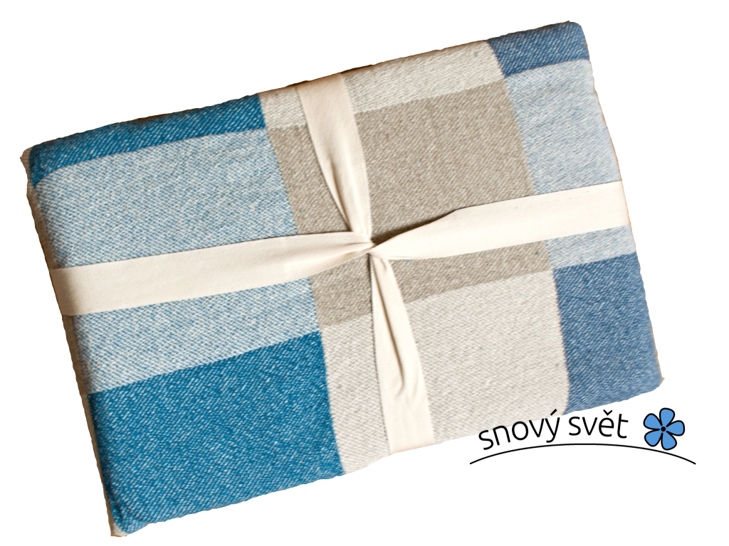 Lněný pléd s modrými kostkami