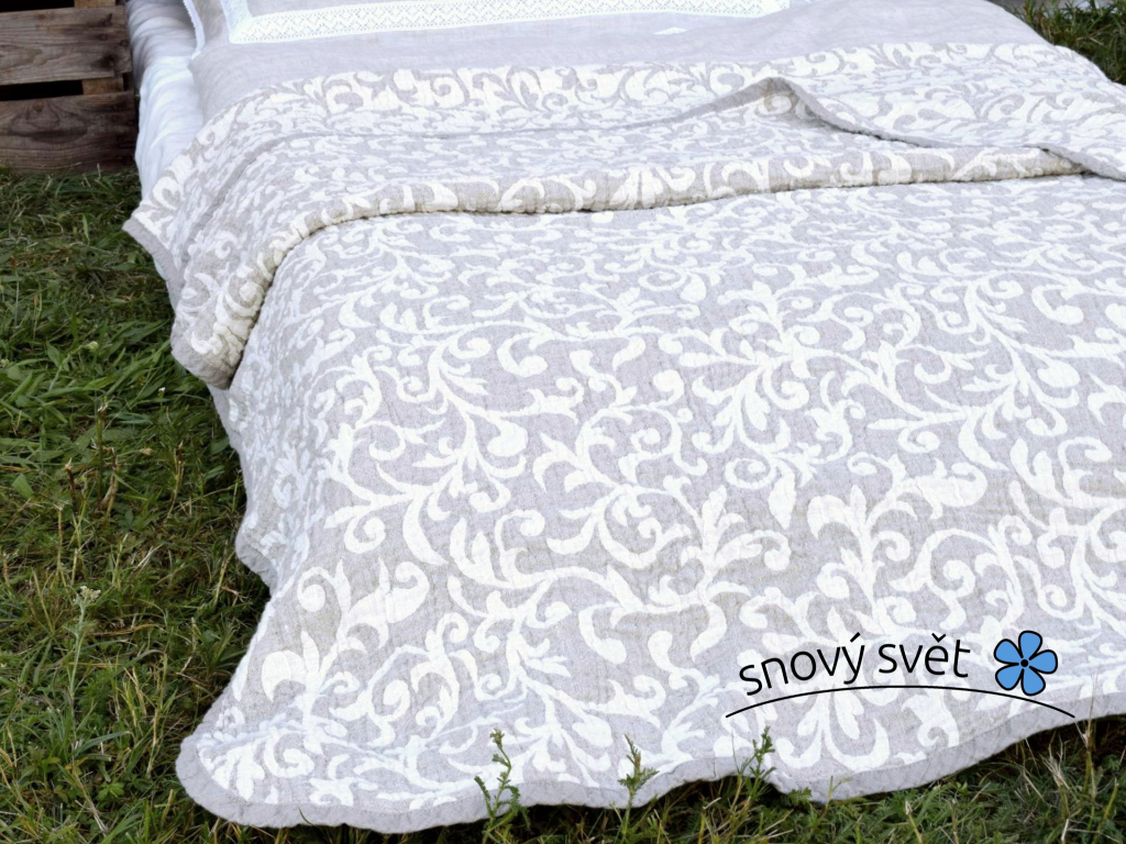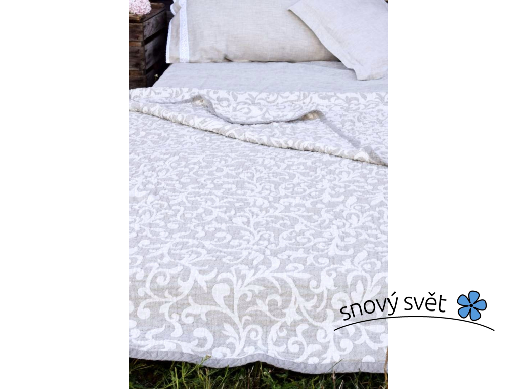 Pléd s ornamentálním vzorem několikavrstvého lnu. Přírodní barvy a vzhled připomíná les se svými kresbami. Vzor je oboustranný pozitiv / negativ. Velice příjemná na dotek. Je možné použít jej jako přehoz, deku nebo jak dětskou podložku na zem. V létě chladí a v zimě hřeje. Hodí se na pohovku samostatně nebo si deku povléknete do povlaku a můžete pod ní spát. Lněná tkanina se svou vysokou otěruvzdorností a pevností se hodí právě na tento typ výrobku. Taková deka bude v rodině i několik generací.