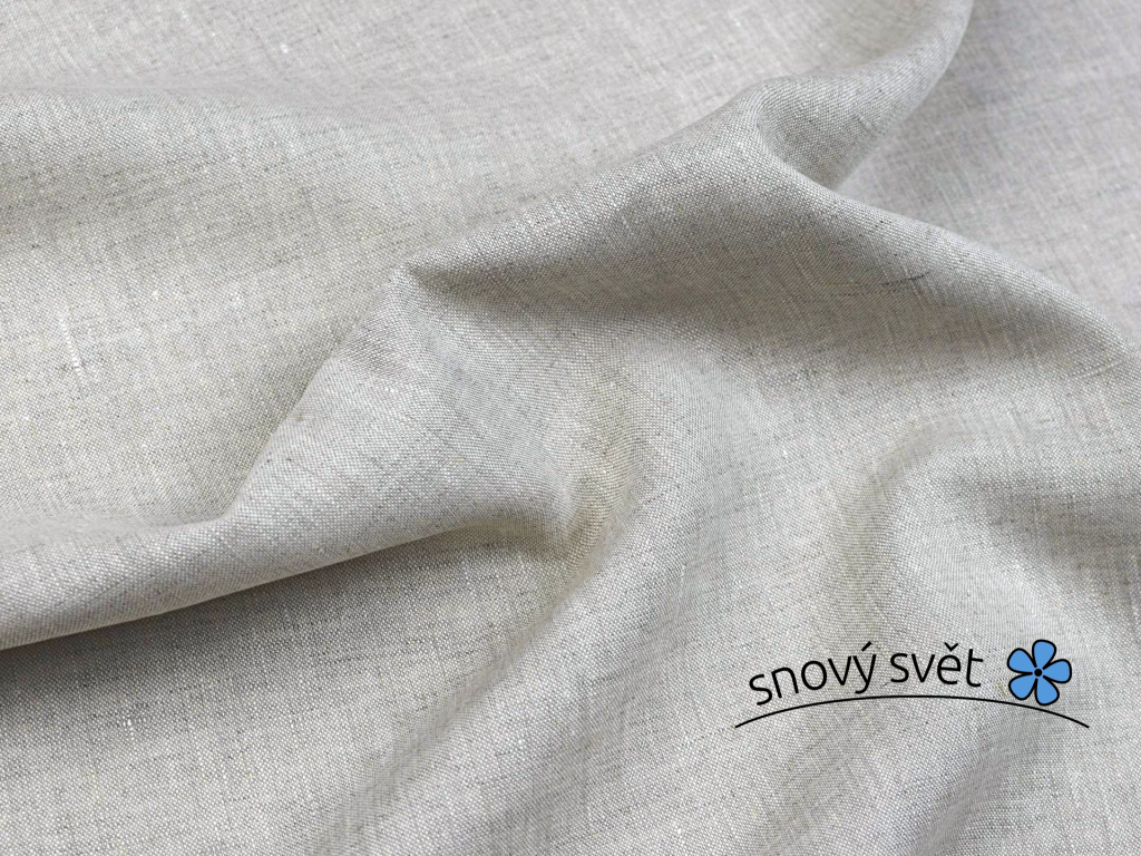 100% lněné plátno oatmeal - světle šedé v kvalitě 190 g/m2. Kombinace bílé a přírodní lněné příze, která vytváří jemný melírový efekt. Látka je měkčená, velice příjemná. Hustě tkaná a výhoda je její velká šíře. Materiál má přirozenou mačkavost. Jedná se o kvalitní plátno z výroby v EU, velmi oblíbené. Pro výrobu jsou použity dlouhovlákenné příze.