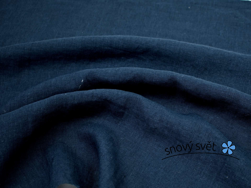 Tmavě modrá - lněná látka měkčená - 245 cm