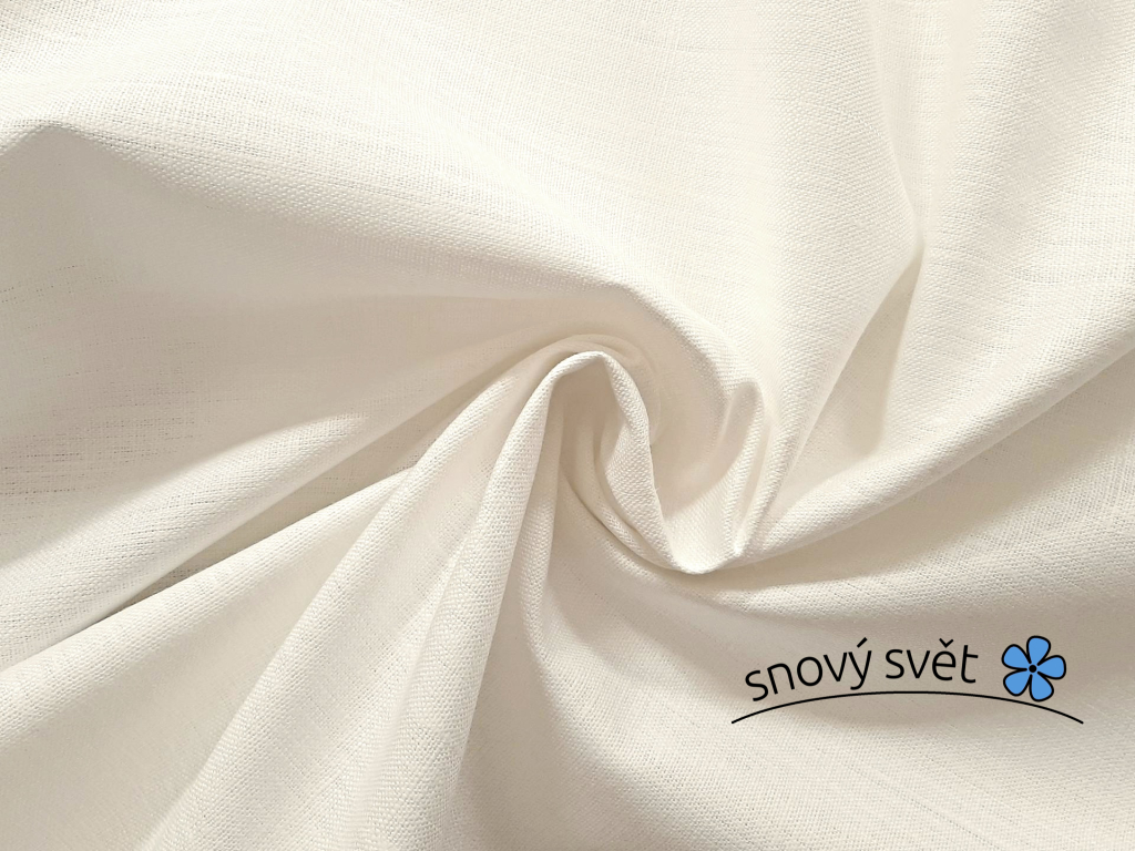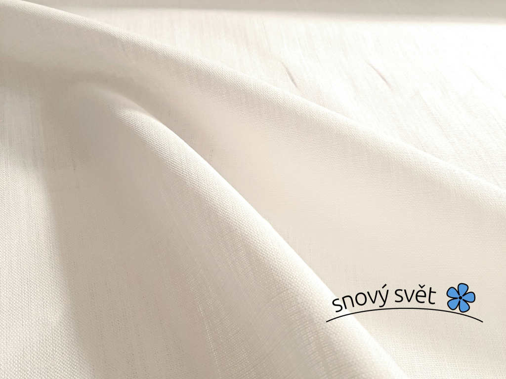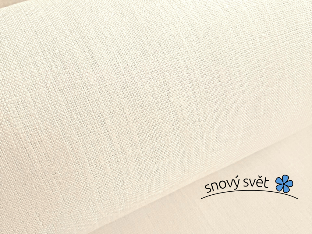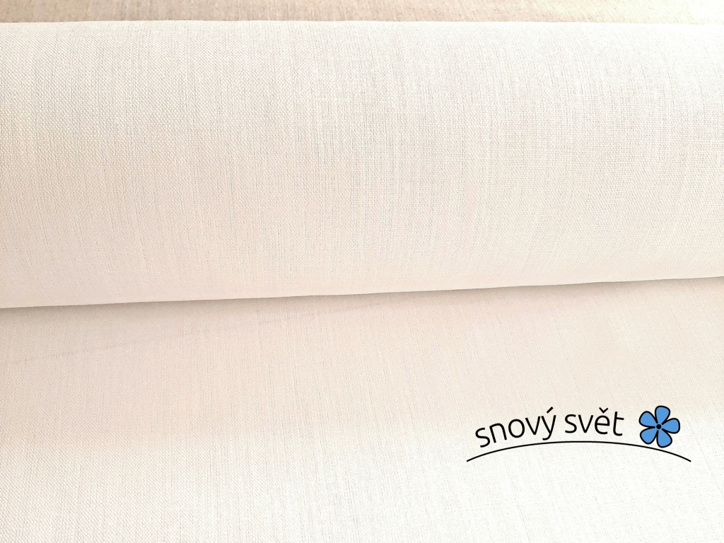 Lněná látka krémová. Látka není měkčená, ale v režném provedení. Pevné velmi kvalitní plátno, které praním a používáním změkne. Velmi pevná a kvalitní z české výroby. Jedná se o plátno z kvalitních dlouhovlákenných evropských přízí.