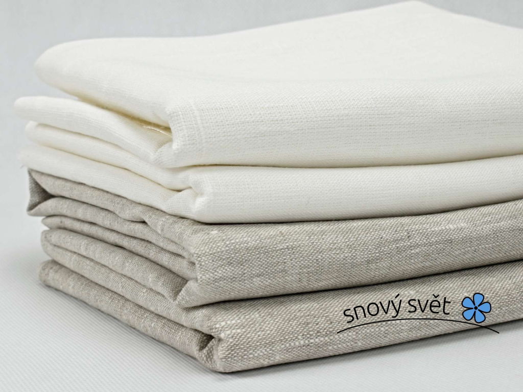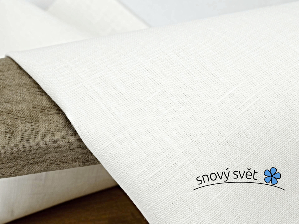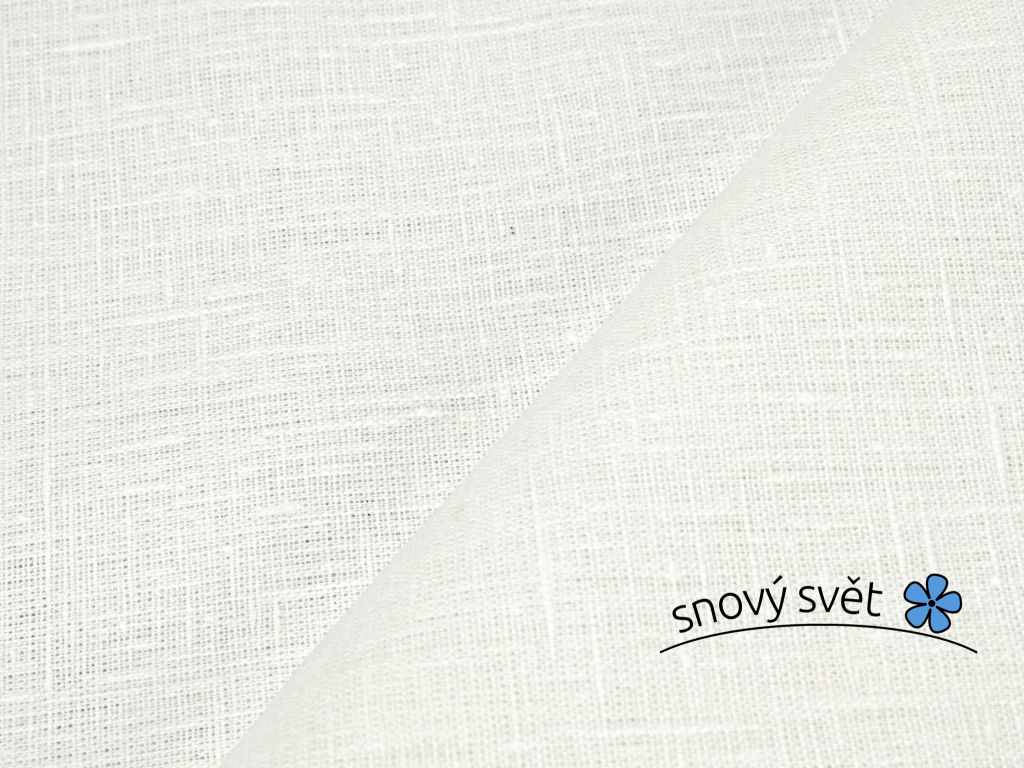 Lněná látka v polobělené barvě. Barva není zářivě bílá, ale s nádechem krémové. Jedná se o vyšší gramáž s použitím silnější příze. Látka není měkčená ani předem vysrážená, je v režném provedení. Má výraznější strukturu a je vidět přirozená nepravidelnost lněných vláken. Látku je vhodné před použitím vysrážet. Praním a používám bude měkčí a jemnější.