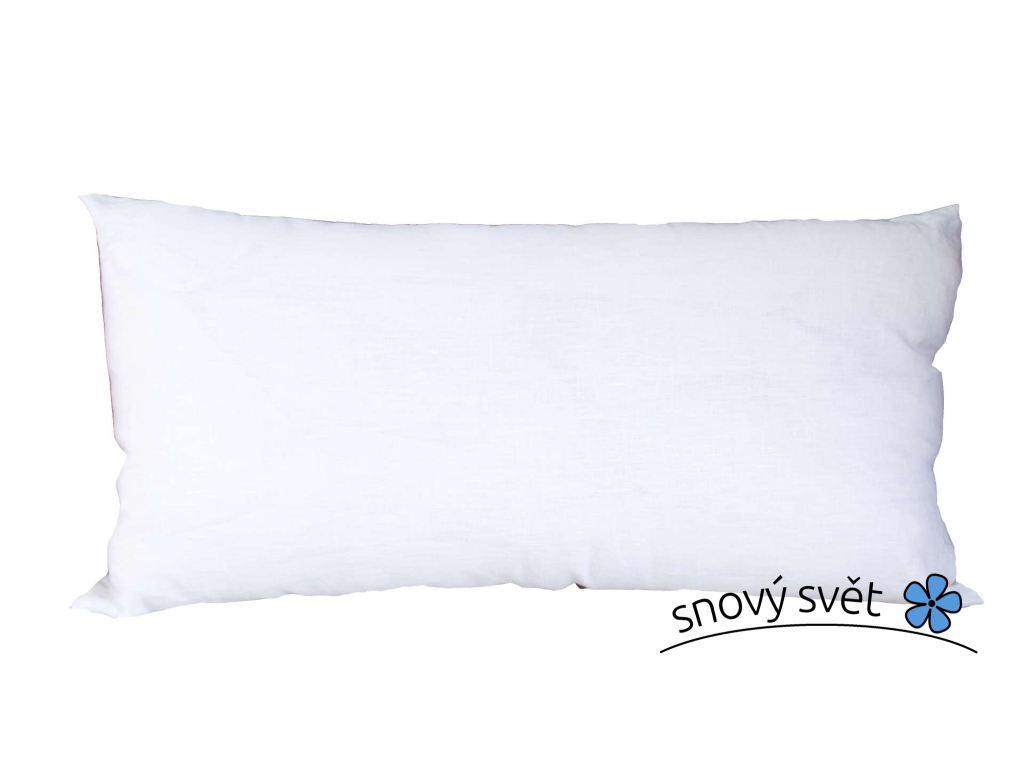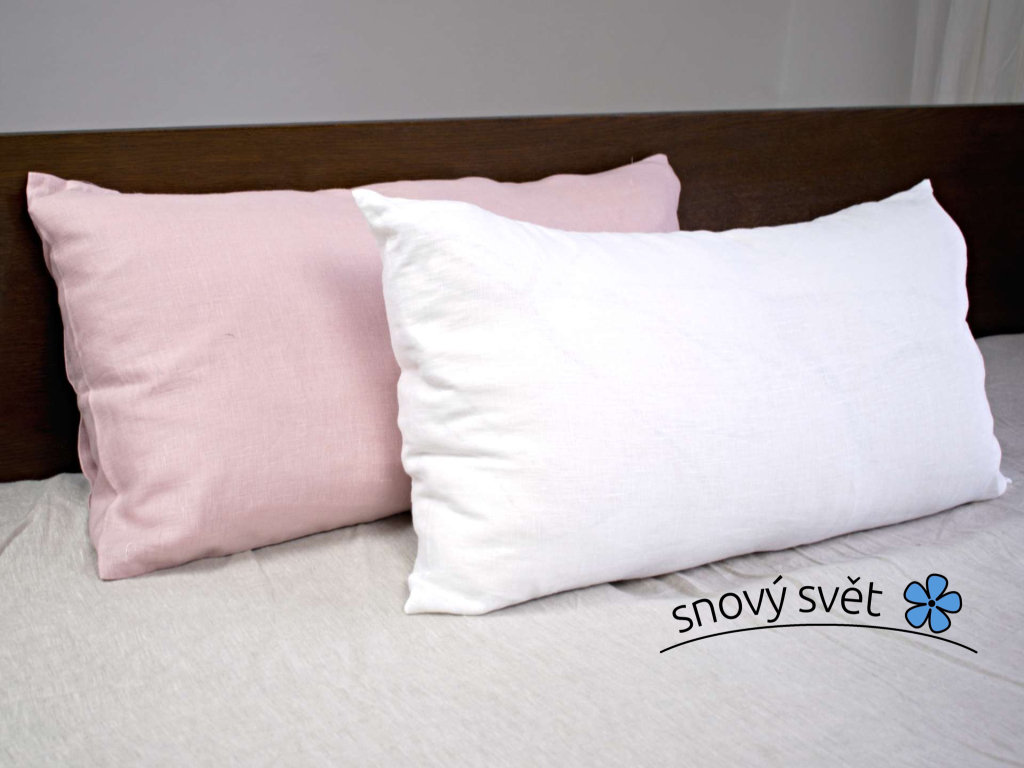 Povlak na polštář z lněného plátna v bílé barvě. Zapínání na zip na kratší straně na české nitěné knoflíky. Ze 100% lnu o střední gramáži.