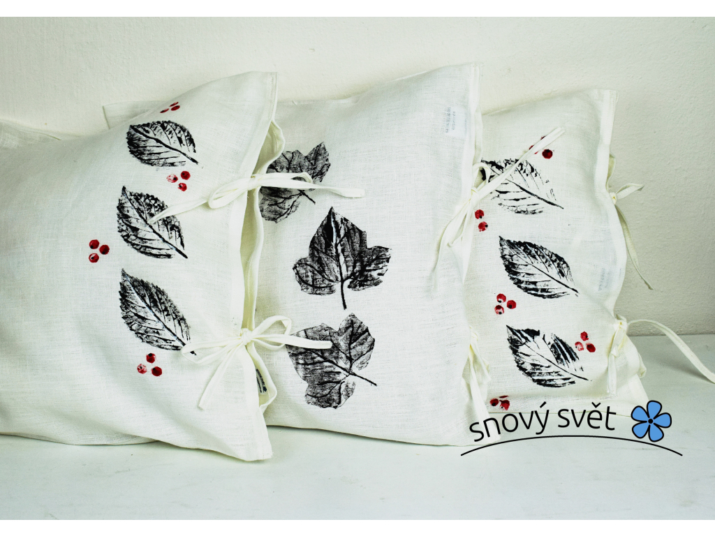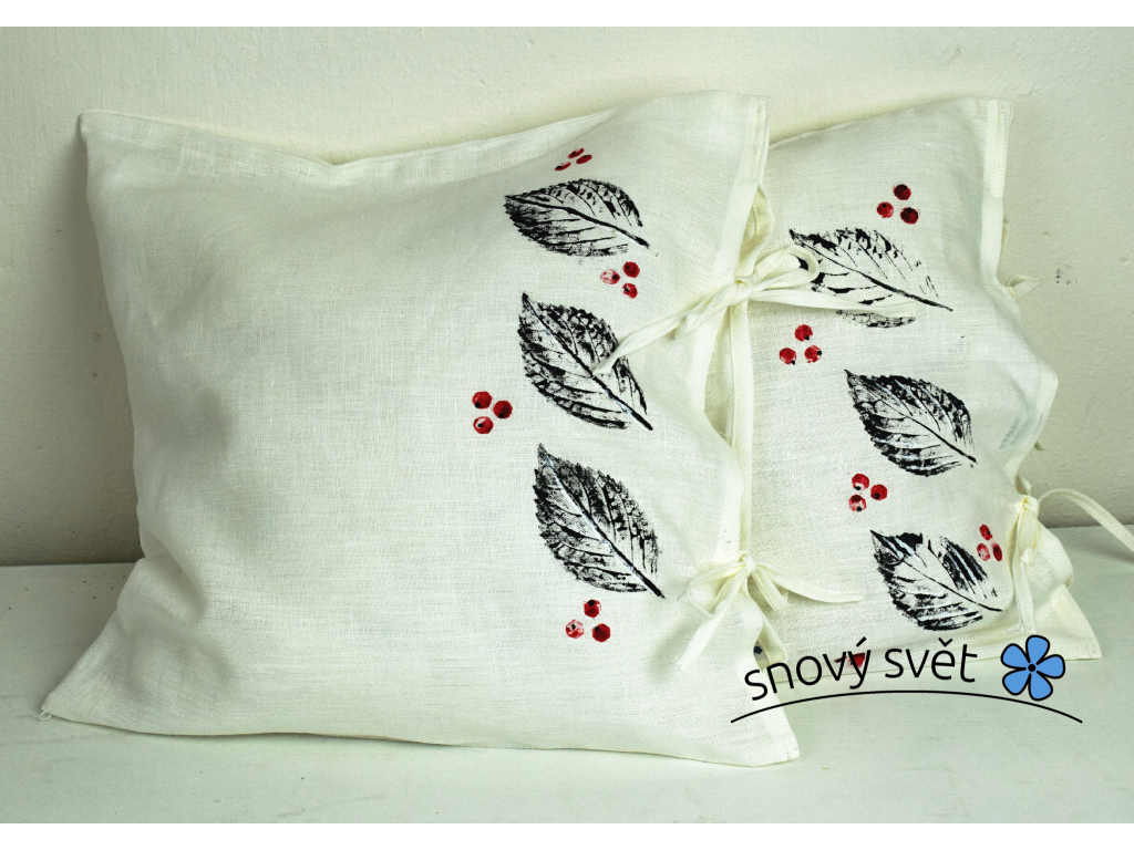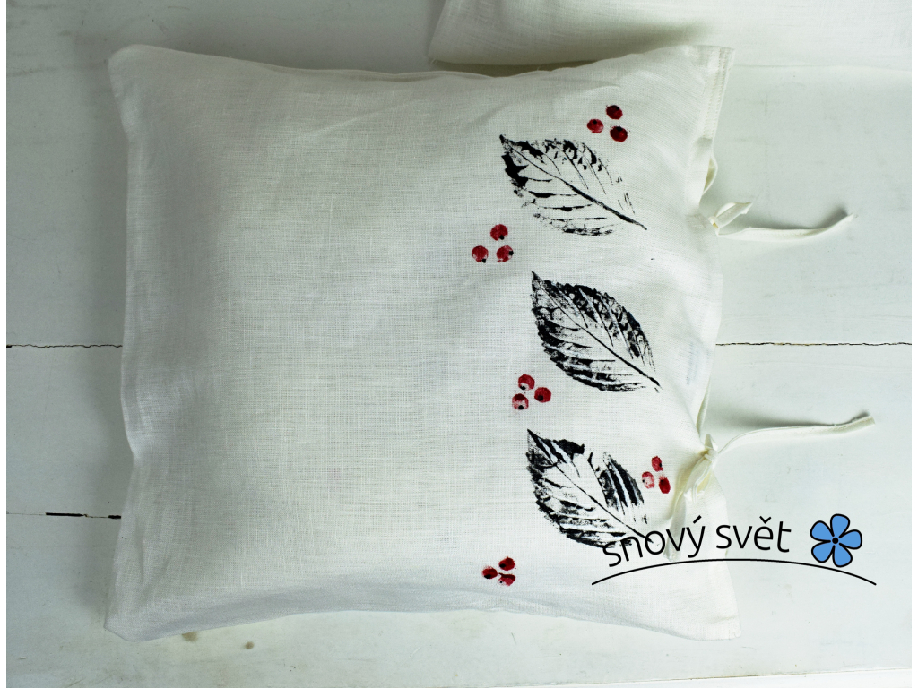 Lněný povlak na polštář se zavazováním a potiskem jeřabiny. Použité plátno je polobělené na jedné straně s potiskem. Jedná se o ruční tisk a malbu, proto obrázky nejsou úplně identické. Vyrobeno z čistého 100% lnu o střední gramáži. Lněná látka je přirozeně antibakteriální, odpuzuje pyly a plísně, proto je vhodná i pro alergiky a astmatiky. Hlavní výhodou spaní v lnu, je jeho chladivý efekt a dobré termoregulační vlastnosti. Zároveň len má tu výhodu, že pohltí nejen množství pachů, ale také vlhkost a přitom na omak zůstává suchý.