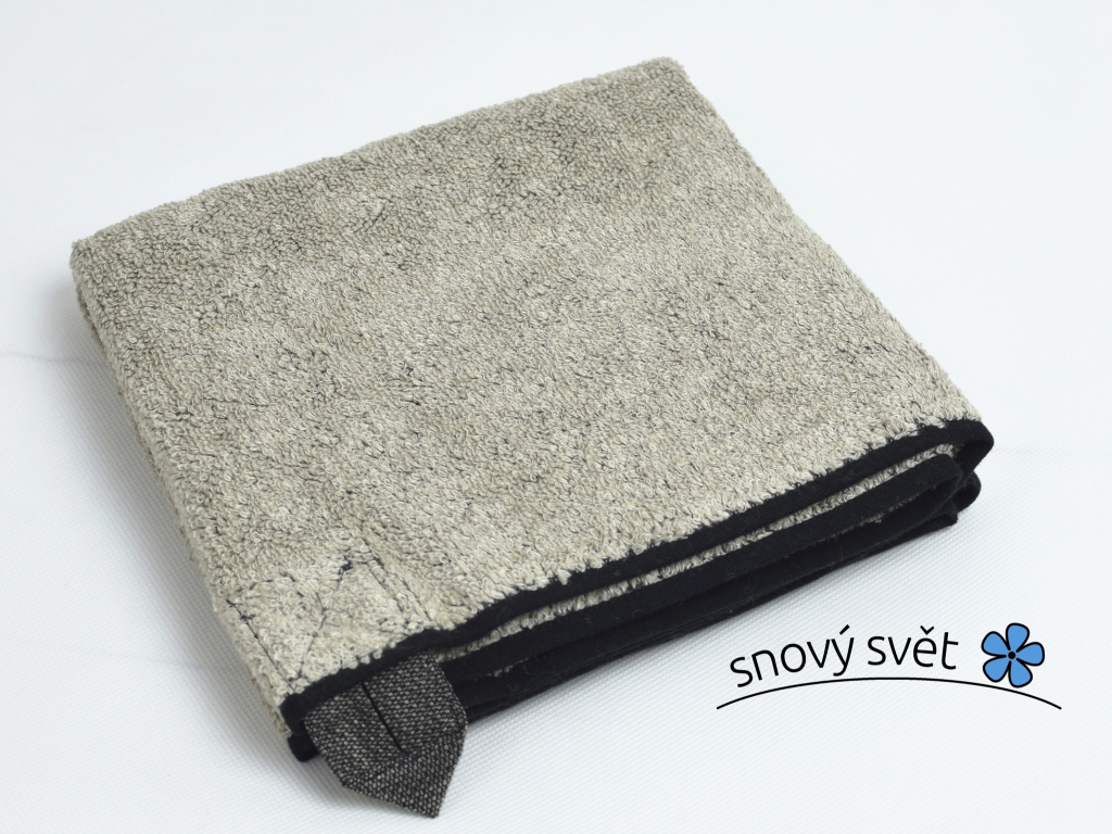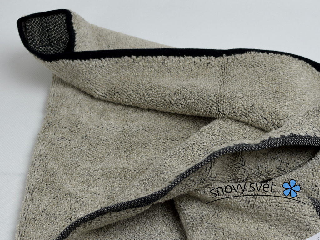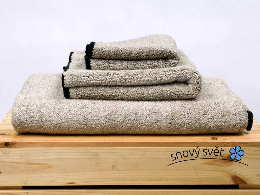 Lněná osuška vysoké kvality a provedení s poutkem je praktickým pomocníkem do každé koupelny. Froté je vytvořeno ze 100% lněného přírodního vlákna tmavě šedé barvy. Okraj je lemován bordurou v černém provedení. Základní tkanina je černá a to vytváří netradiční vzhled. Ručník je kvalitně zpracován do každého detailu. To umožňuje vychutnat si luxusní pocit při jeho používání. Měkkost a hebkost vás přitom překvapí a pohltí. Jedná se o novinku na našem trhu.
