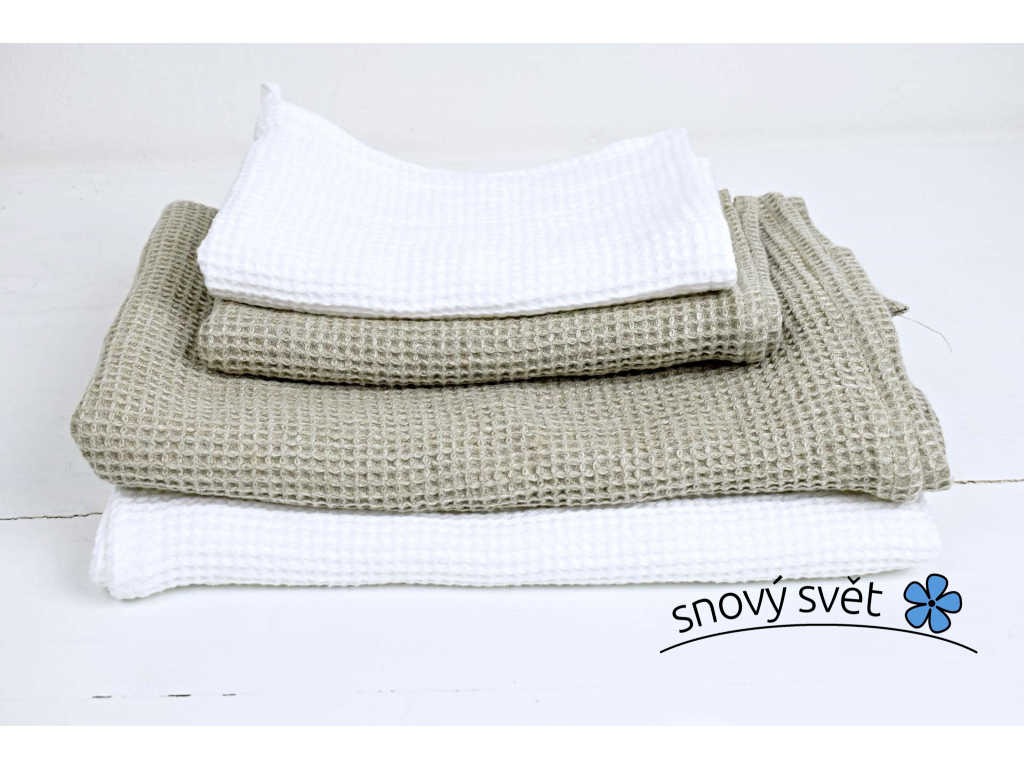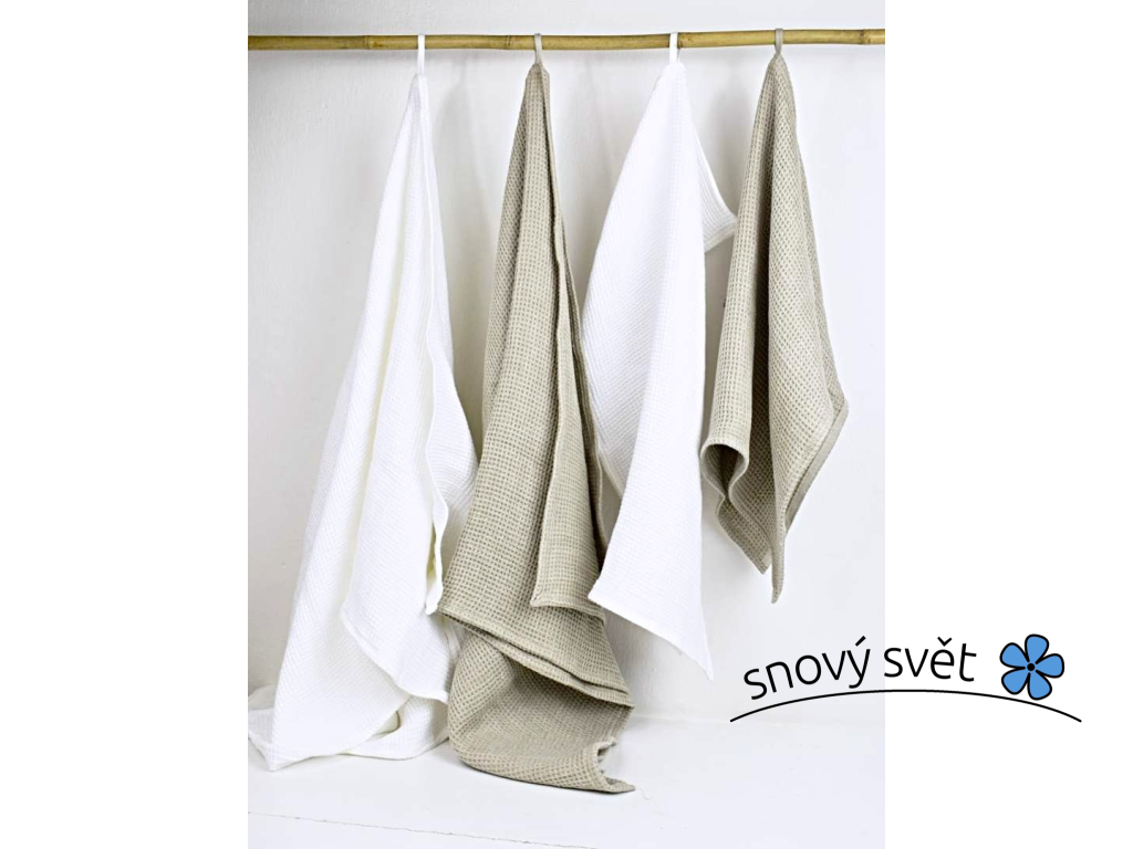 Představujeme Vám lněnou osušku, kterou v běžném obchodě nenajdete. Má čistě bílou barvu. Jedná se o plátno ve vysoké kvalitě, která zajistí maximální funkčnost pro každou domácnost. Osuška má poutko na zavěšení a je vyroben z tvarovaného materiálu, kterému se přezdívá "Vafle", protože právě svou strukturou připomíná toto americké jídlo. Ten zaručuje vysokou savost a díky lnu také odolnost. Jeho měkkost a jemnost vás překvapí.