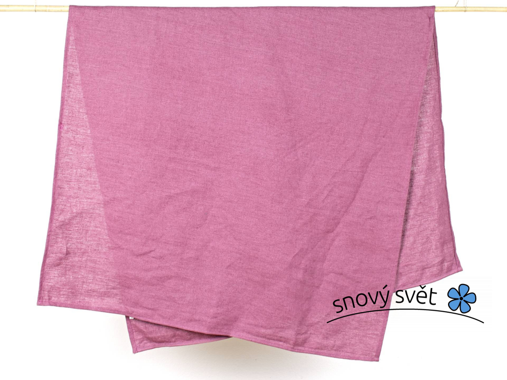 Ručník z lněného plátna s všitým poutkem na pověšení. Ručník si můžete vybrat v několika velikostech. Větší rozměr je možné použít jako osušku nebo deku k vodě, vhodná je i na zabalení do sauny. Menší použijete do koupelny nebo si jej zabalíte do tašky na cesty. Látka je v tlumeném purpurovém odstínu s výraznější hrubší strukturou.