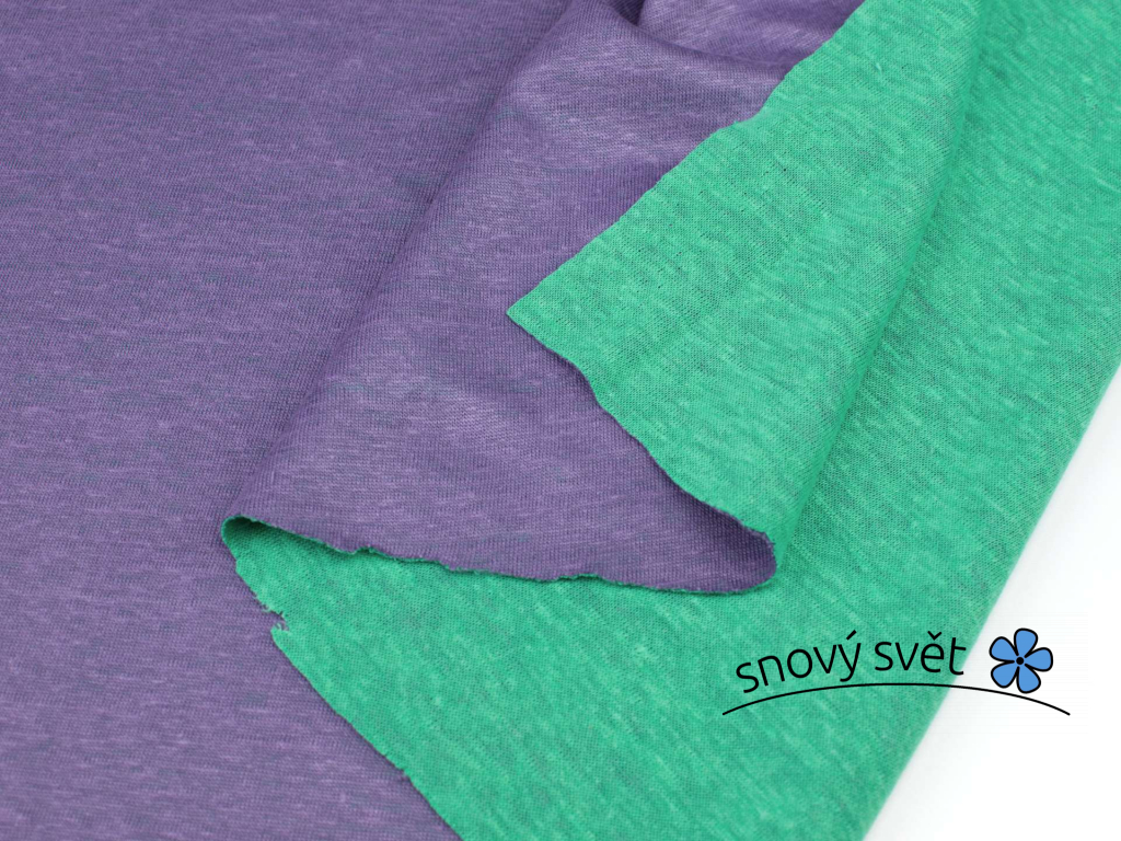Lněný úplet dvouvrstvý zelená - fialová lila