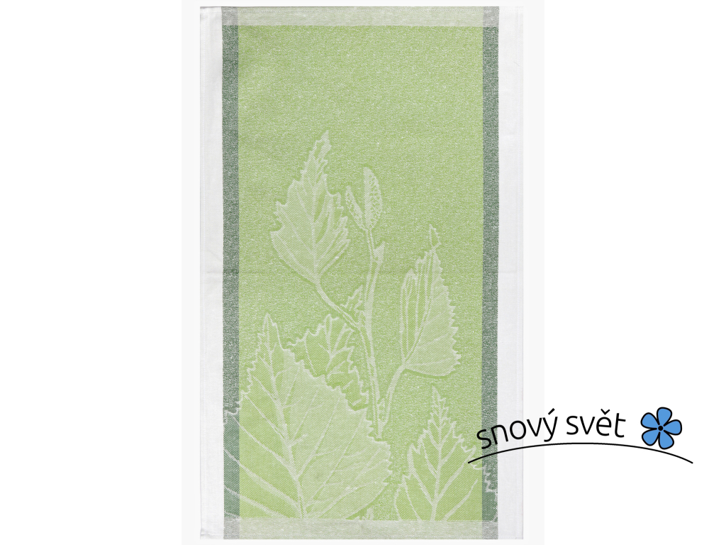 Kombinace bílé, světle a tmavě zelené. Jemná a účelná lněná utěrka je ideální volbou pro každého, kdo ocení vysokou kvalitu a originální design. Je utkána žakárovou technikou, díky které má unikátní oboustranný vzor s motivem břízy. Vzor vzniká tkaním barvených přízí a nejedná se o potisk. Utěrka má poutko na pověšení.