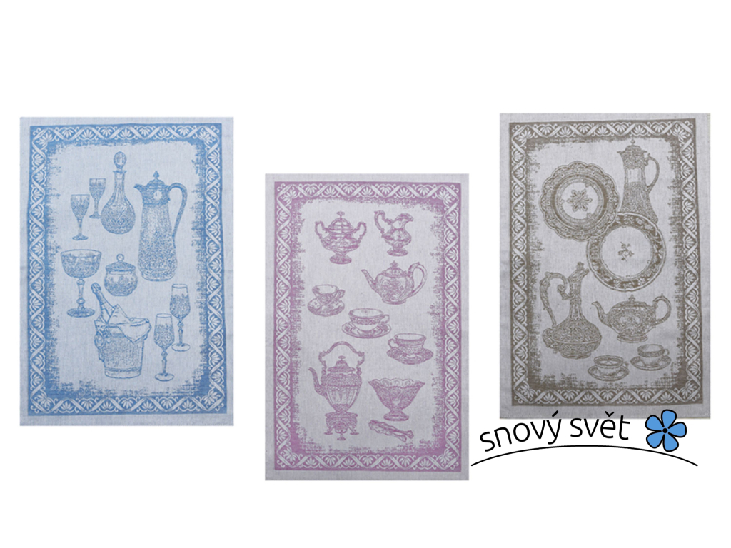 Tato elegantní lněná utěrka je ideální volbou pro každého, kdo ocení vysokou kvalitu a originální design. Je utkána žakárovou technikou, díky které má unikátní oboustranný vzor s motivem skleněného nádobí. Vzor vzniká tkaním barvených přízí a nejedná se o potisk. Utěrka má poutko na pověšení.