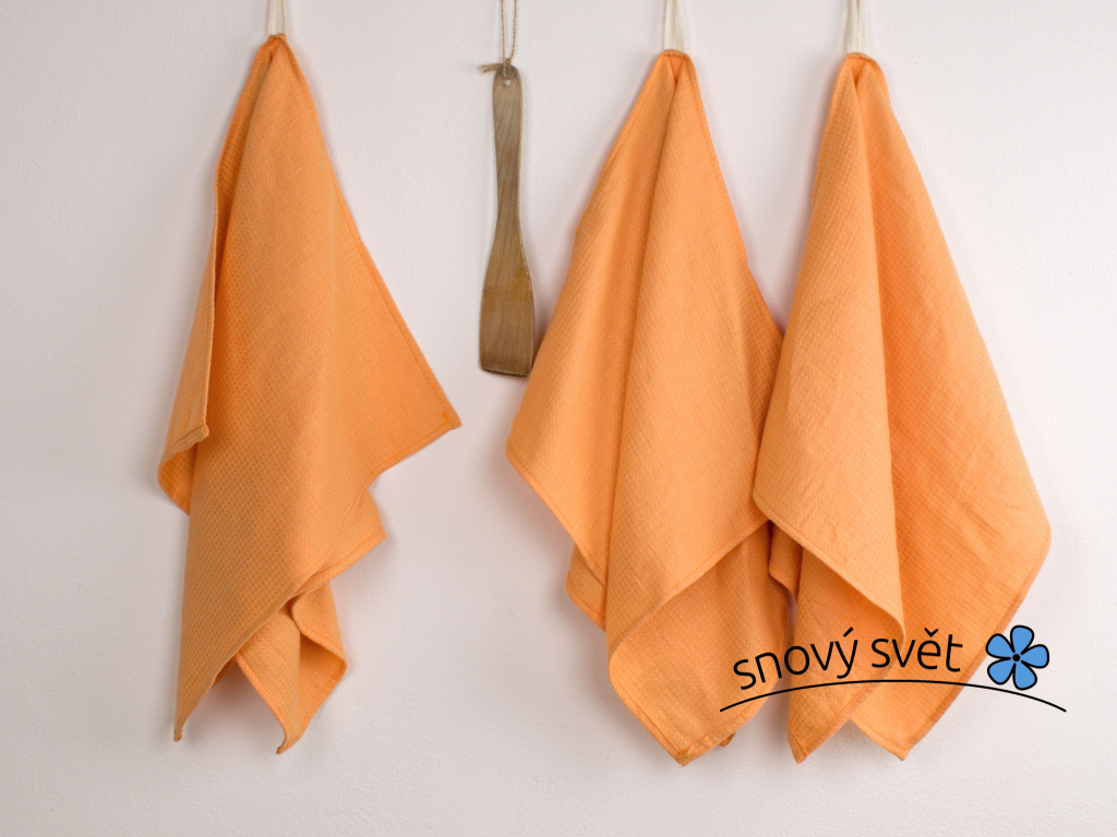 Barevná pololněná utěrka (3x BL0149), která zajistí maximální funkčnost pro běžnou domácnost i pro restauraci. Vhodná na běžné používání a vždy bude dobře sloužit. Lněná utěrka má poutko na zavěšení. Tento kuchyňský doplněk je vyroben z tvarovaného materiálu, kterému se přezdívá "Vafle", protože právě svou strukturou připomíná toto americké jídlo. Ten zaručuje vysokou savost a díky lnu také odolnost.