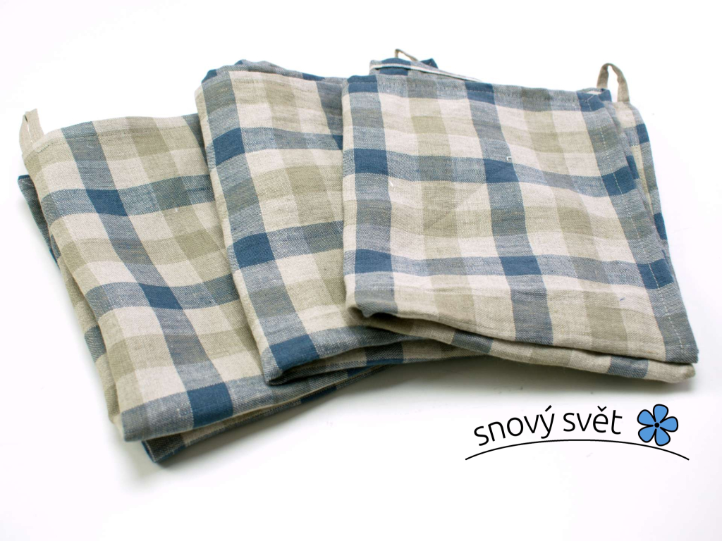 Představujeme Vám lněnou utěrku s kostkovaným modrým vzorem. Jedná se o utěrku ze 100% lněného plátna, která zajistí maximální funkčnost pro běžnou domácnosti. Lněná utěrka má poutko na zavěšení.