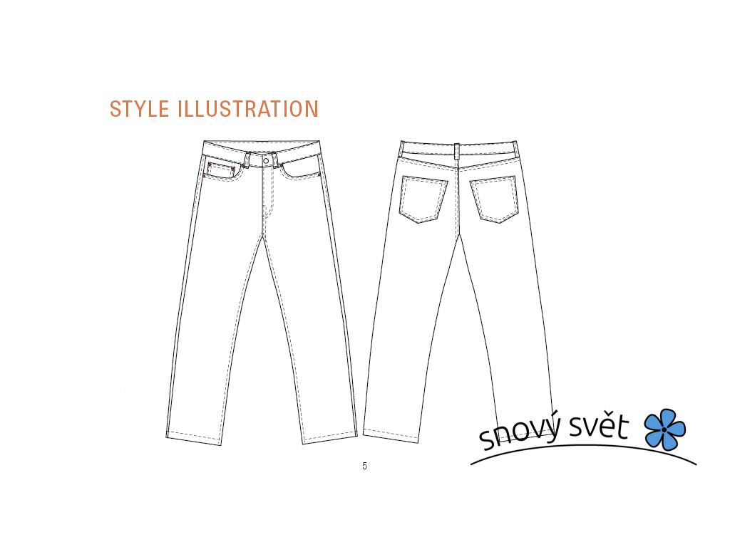 Kalhoty je vhodné šít z těžších materiálů 280-380g - tkané materiály nepružné - len, bavlna, konopí, denim.