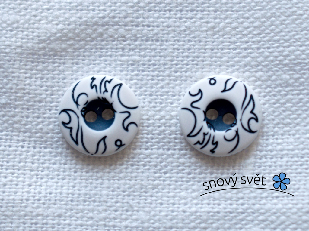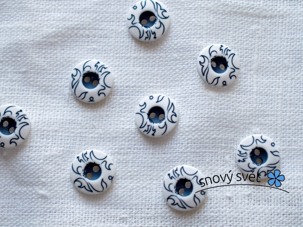 Knoflík s jemnými modrými listy 24´´ o velikost 14 mm.