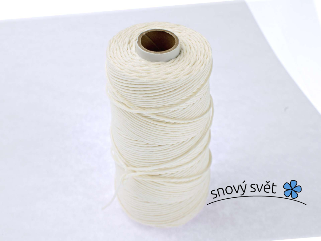 Režná lněná potravinářská nit. Jedná se o 100% len, čímž je zaručena jeho pevnost. Barva je bílá s nádechem krémové. Vhodná třeba na Macramé (drhání), lepené podložky ve floristice, na šperky a jinou tvorbu. Pro šití výrobků z kůže nebo obuvi, případně další historické předměty.