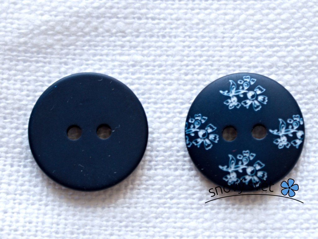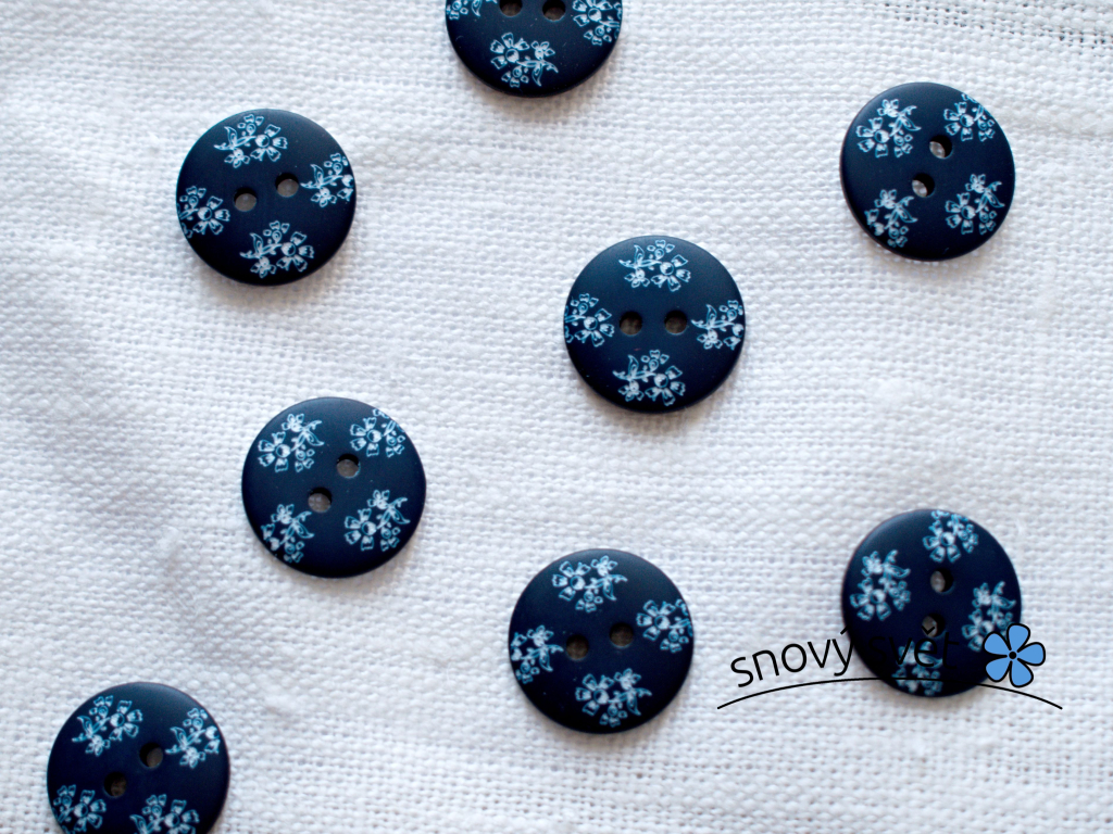Knoflík s jemnými bílými květy 28´´ o velikost 16,5 mm.