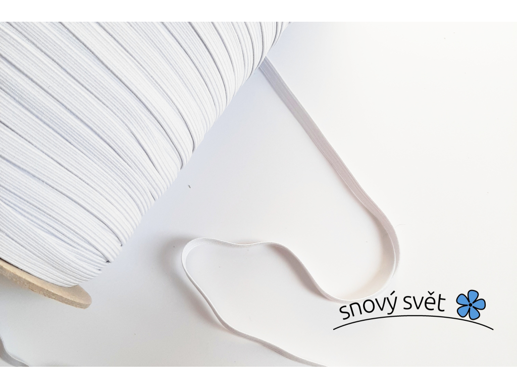 Oděvní elastická guma, pruženka o šířce 9 mm. Pruženka prádlová plochá, tkaná.