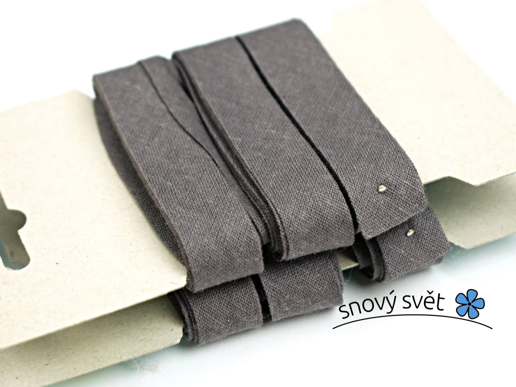 Šikmý bavlněný proužek 14mm - tmavě šedá