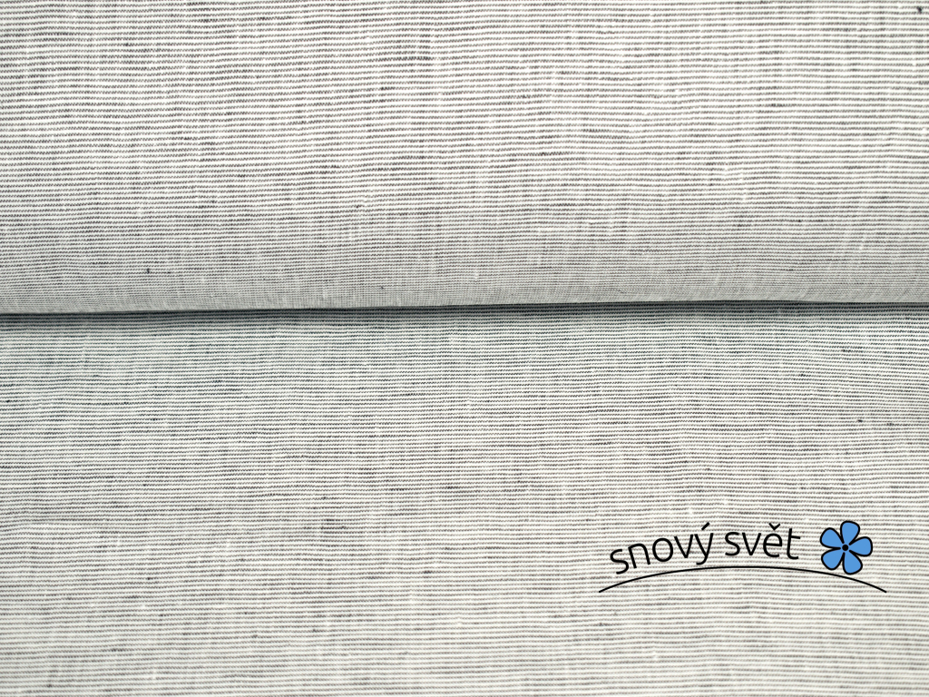 Jemná lněná látka v bílo-černém tenkém proužku - 100% len v TOP kvalitě. Látka je tkaná kombinací bílé a černé příze, jemná na dotek, přitom pevná a kvalitní. Úpravou je sanforizace, je tedy upravená již z výroby. Látka není z výroby měkčena, neprošla chemickým procesem doměkčení. Jako zadání pro výrobu bylo, aby bylo do procesu výroby vneseno co nejméně chemických úprav. Na první dotek se zdá "tuhá", ale po několika vypráních a jisté době používání krásně změkne.