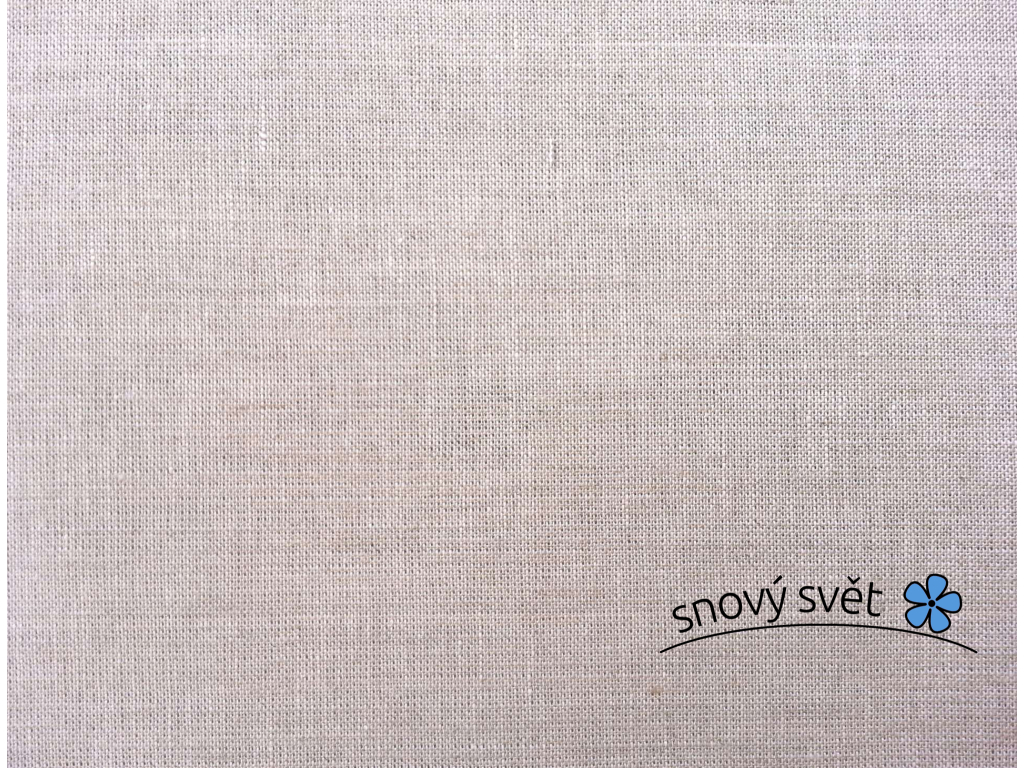 Lněná látka o vyšší gramáží světle šedé barvy. Při tkaní se střídají bílá bavlněná a přírodní lněná příze. Sanforizovaná, praná. Jedná se o kvalitní Český výrobek. Látka má hrubší strukturu a střední sílu vláken.