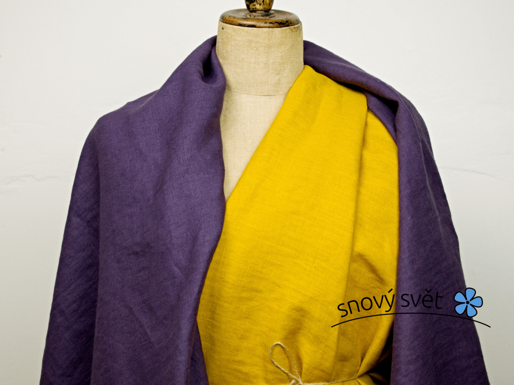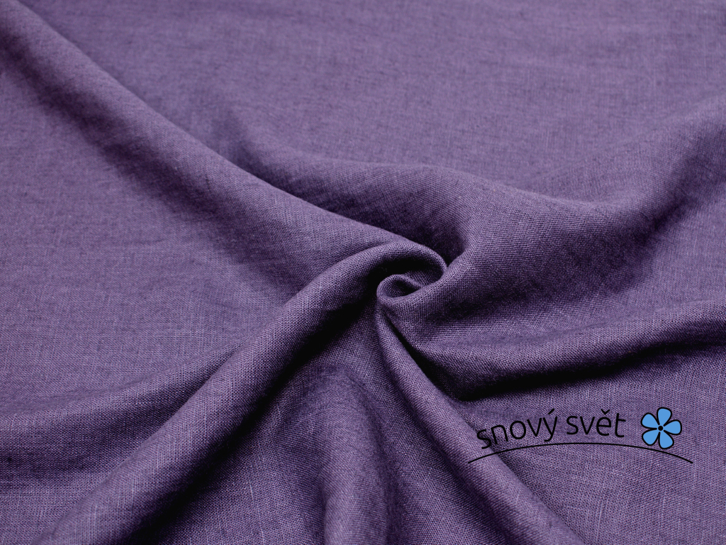 100% lněné plátno o střední gramáži, měkčené a velice příjemná na dotek. Látka je praná a upravovaná v České republice. Látka je ještě speciálně doměkčována, tak aby byla příjemná pro oblečení. V tmavě fialové barvě.