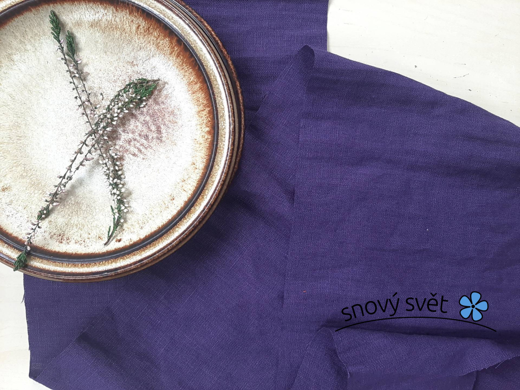 VZOREK - Lněná látka tmavá fialová royal- 2.jakost